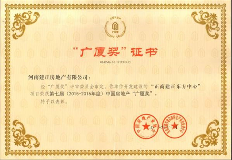 建正東方中心榮獲廣廈獎