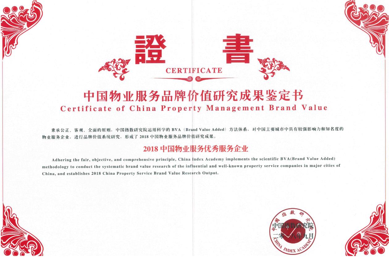 榮獲“2018中國物業(yè)服務優(yōu)秀服務企業(yè)”