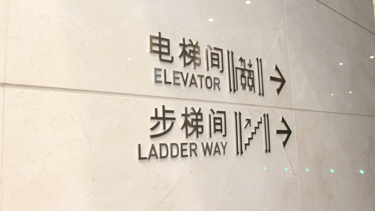 閘機(jī)處清晰的電梯間、步梯間指示標(biāo)識