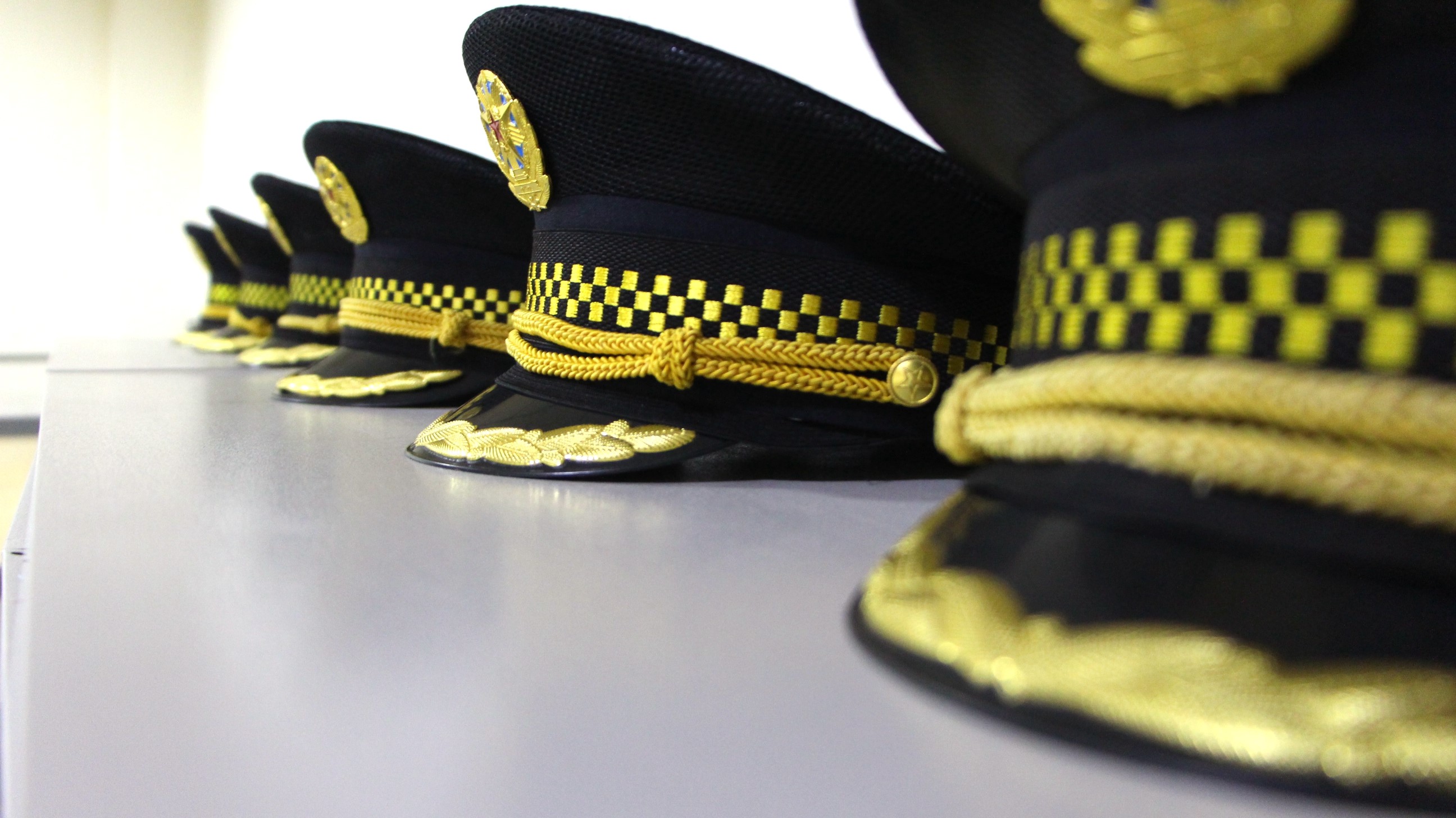 統(tǒng)一標(biāo)準(zhǔn)擺放的消防、秩序帽