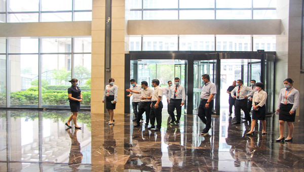 然后調(diào)研組一行又參觀了物業(yè)服務(wù)中心、員工宿舍、工程調(diào)度中心、遠(yuǎn)程監(jiān)控指揮中心、設(shè)施設(shè)備房等,詳細(xì)了解興業(yè)物聯(lián)管理與服務(wù)工作,并對(duì)興業(yè)物聯(lián)高品質(zhì)的物業(yè)服務(wù)和支持企業(yè)復(fù)工復(fù)產(chǎn)的工作成果給予了高度肯定。