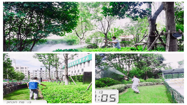 物業(yè)人員頂著高溫,采用專業(yè)工具和藥液在指定區(qū)域廣泛消殺蚊蟲,特別是針對(duì)垃圾桶周邊、墻角、易積水處、綠化帶樹葉茂密處等容易滋生蚊蟲的地方強(qiáng)化噴灑藥液,做到不留死角。