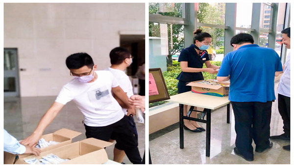當(dāng)天中午,寫字樓辦公人員外出就餐回來,在大堂排著長(zhǎng)隊(duì),每人免費(fèi)品嘗“降溫”冷飲,恰似夏日里的陣陣涼風(fēng),沁人心脾。