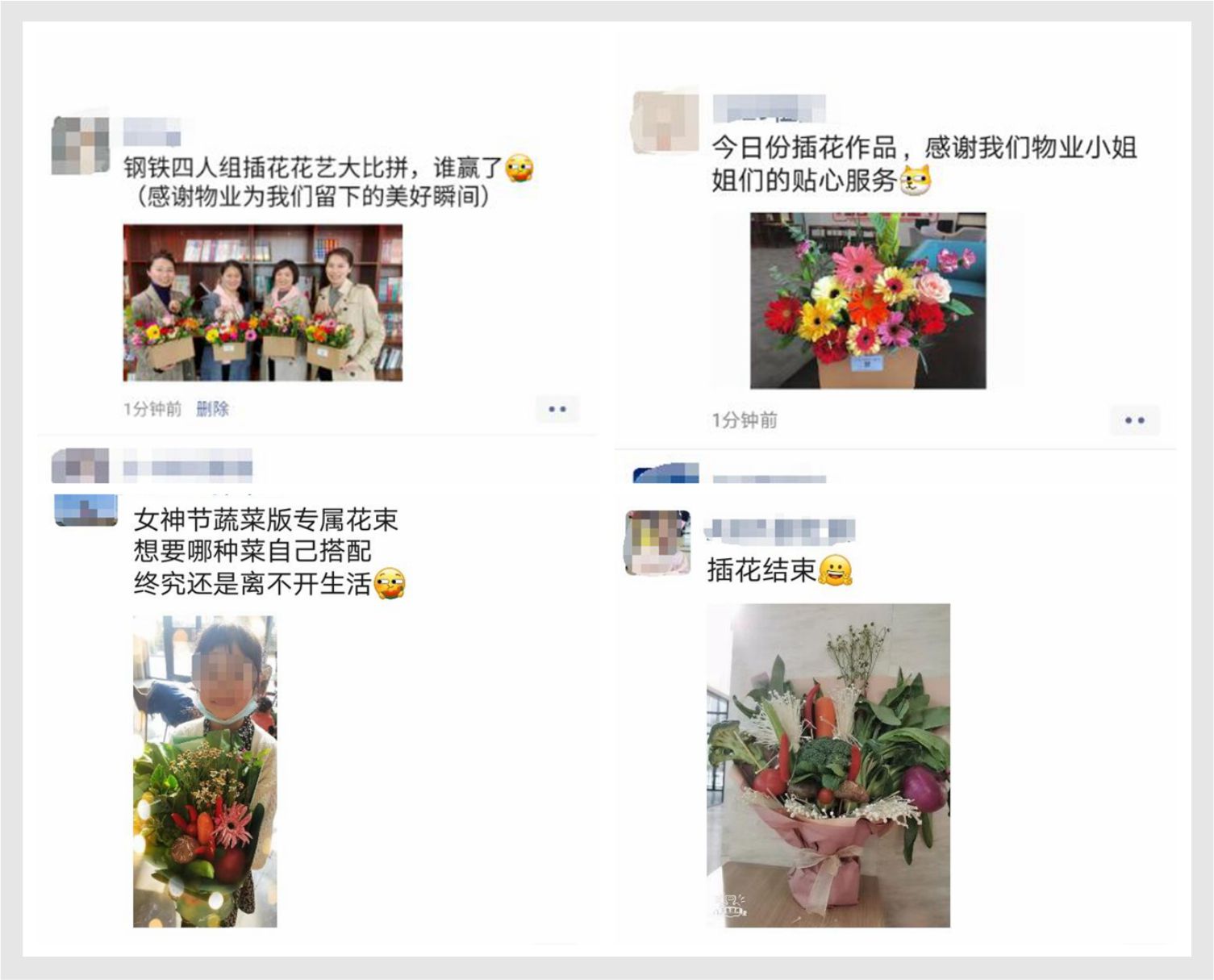 “您好,女神節(jié)快樂!”今早的你,從大堂走過,有沒有看到這一群笑容溫暖,抱著一大束鮮花送驚喜的物業(yè)工作人員呢?在大堂入口處,每一位經(jīng)過的“女神”都得到一支玫瑰。